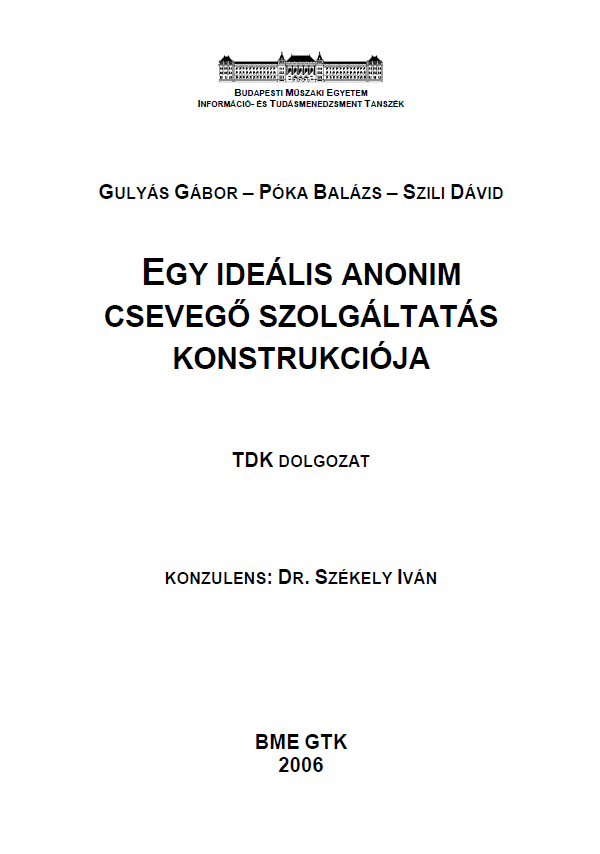Tanulmány megtekintéseGulyás Gábor, Póka Balázs, Szili Dávid: Egy ideális anonim csevegő szolgáltatás konstrukciója