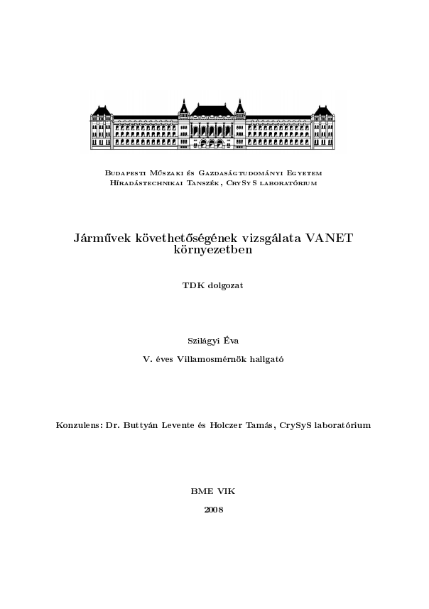 Tanulmány megtekintéseSzilágyi Éva: Járművek követhetőségének vizsgálata VANET környezetben